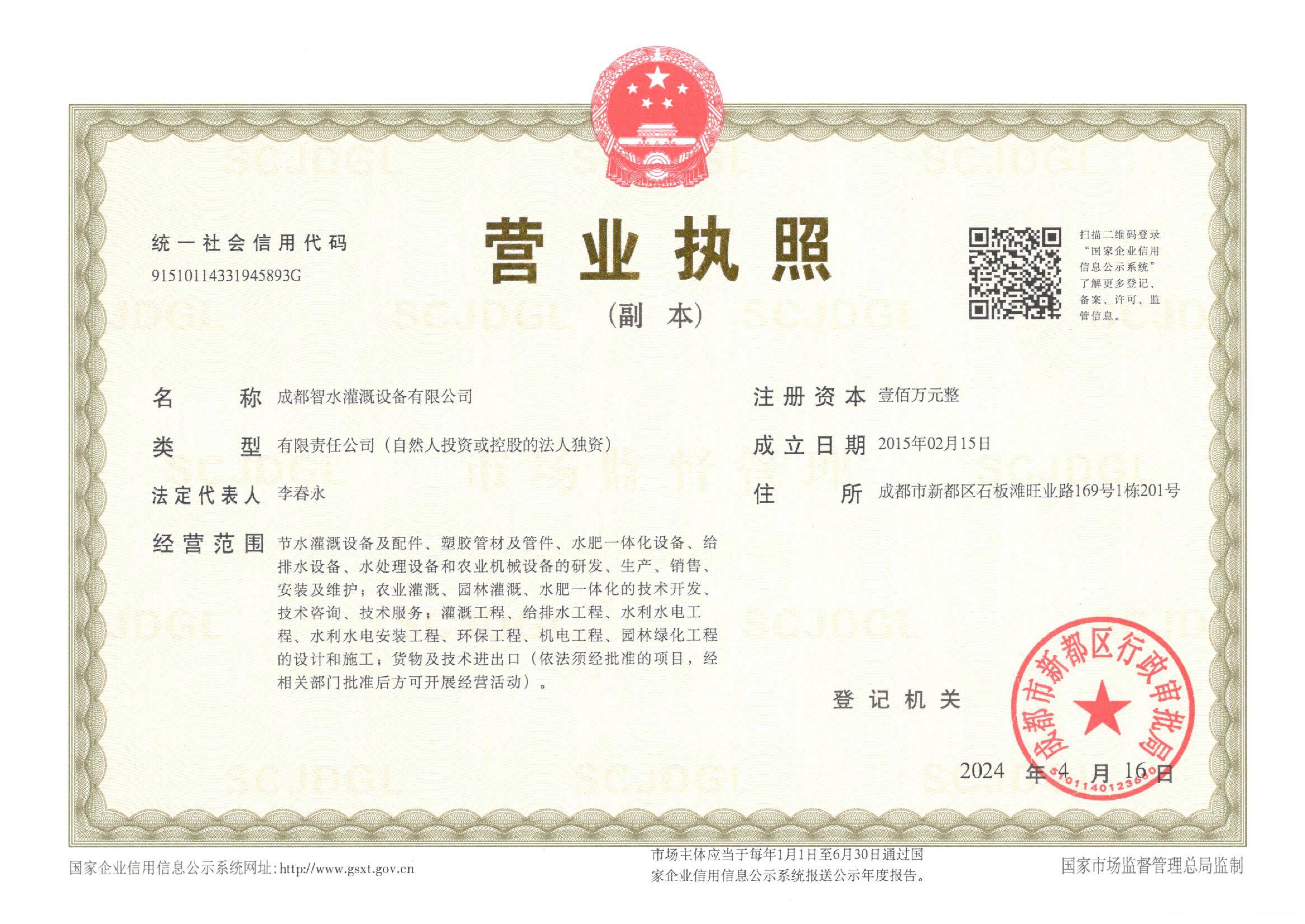 成都智水灌溉設備有限公司(以下簡稱智水灌溉)成立于2015年,是成都齊沃農業科技有限公司旗下全資子公司。